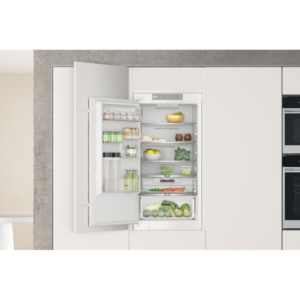 Cechy lodówko-zamrażarki do zabudowy Whirlpool: kolor biały. Szklane półki zapewniają wytrzymałość i elegancję. Wentylator zapewnia płynny i równomierny przepływ powietrza we wnętrzu urządzenia w celu zapewnienia udoskonalonej wentylacji. Czujniki 6-ty Zmysł automatycznie obniżają temperaturę w lodówce po włożeniu nowych produktów, zmniejszając zużycie energii. Praktyczna półka do bezpiecznego przechowywania butelek.